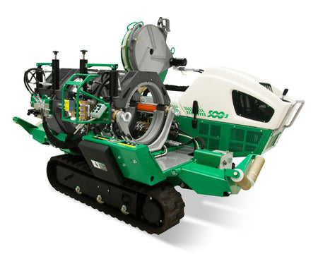 TracStar® 500 Series 3 is capable of fusing 6" IPS - 20" OD (160mm - 500mm).  The TracStar® 500 was the first fusion machine in the world to be mounted on a track system, making it mobile in almost any terrain. Considered the flagship of McElroy machines, its success spawned the entire TracStar line of fusion equipment. The TracStar 500 Series 3 adds additional productivity enhancing features, such as indexer-mounted facer and heater that are powered by the machine, standard Hydraulic Clamping, dual pipe lifts and an economy engine throttle setting to conserve fuel.
