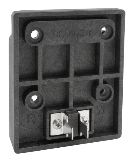- For strength, battery adapters plates are constructed of Delrin® or glass-filled polycarbonate.