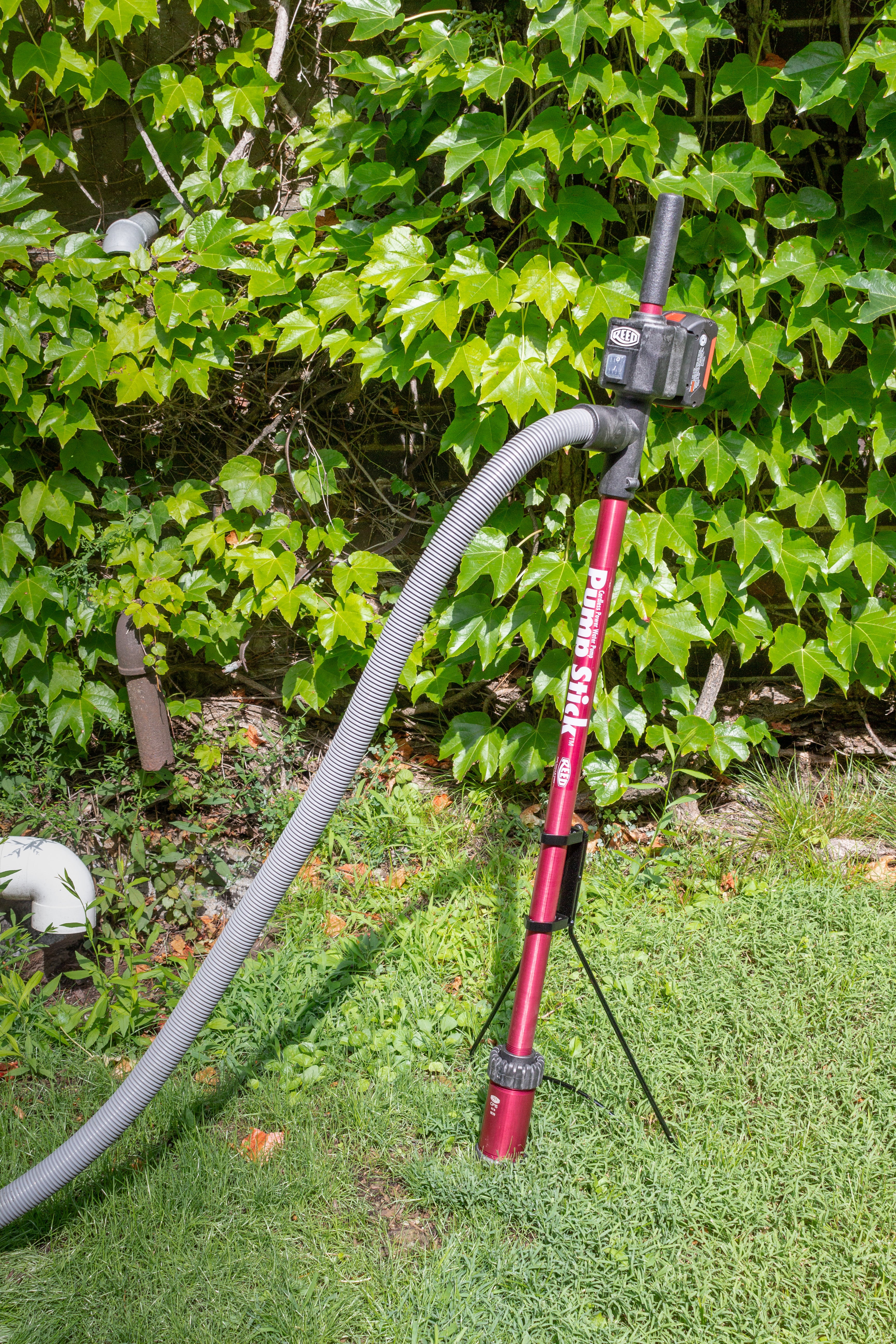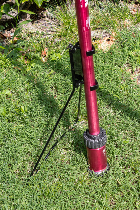 Features: Heavy Duty stand that supports Pump Stick® for hands-free use; Attaches to Pump Stick® for operator relief during longer use times; Legs can be positioned in any orientation around the pump to suit the operator; and for maximum stability, position the outlet hose opposite of the stand legs.